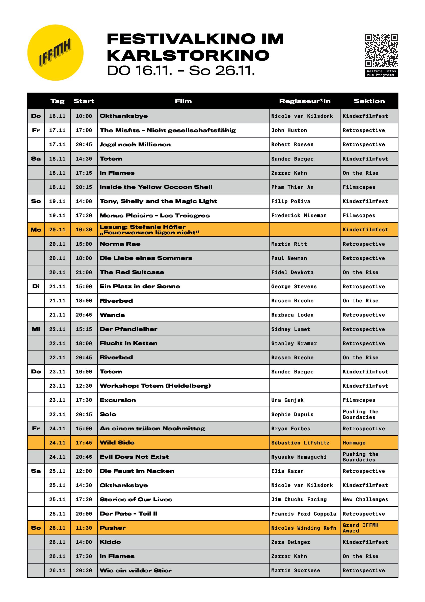 Vom 16. - 26. November ist das Karlstorkino Spielstätte des IFFMH.